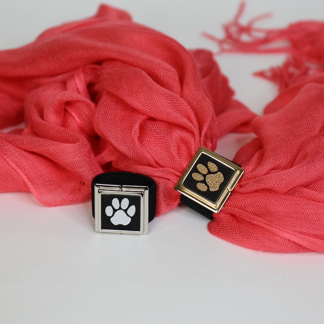 "I wear my Paw Signet Scarf Lock every time I wear a scarf. The flexible strap fits all the scarves I have in my closet. It’s practical and fun to wear. The Paw is by far my favorite design and will be for a pet lover like me!"
